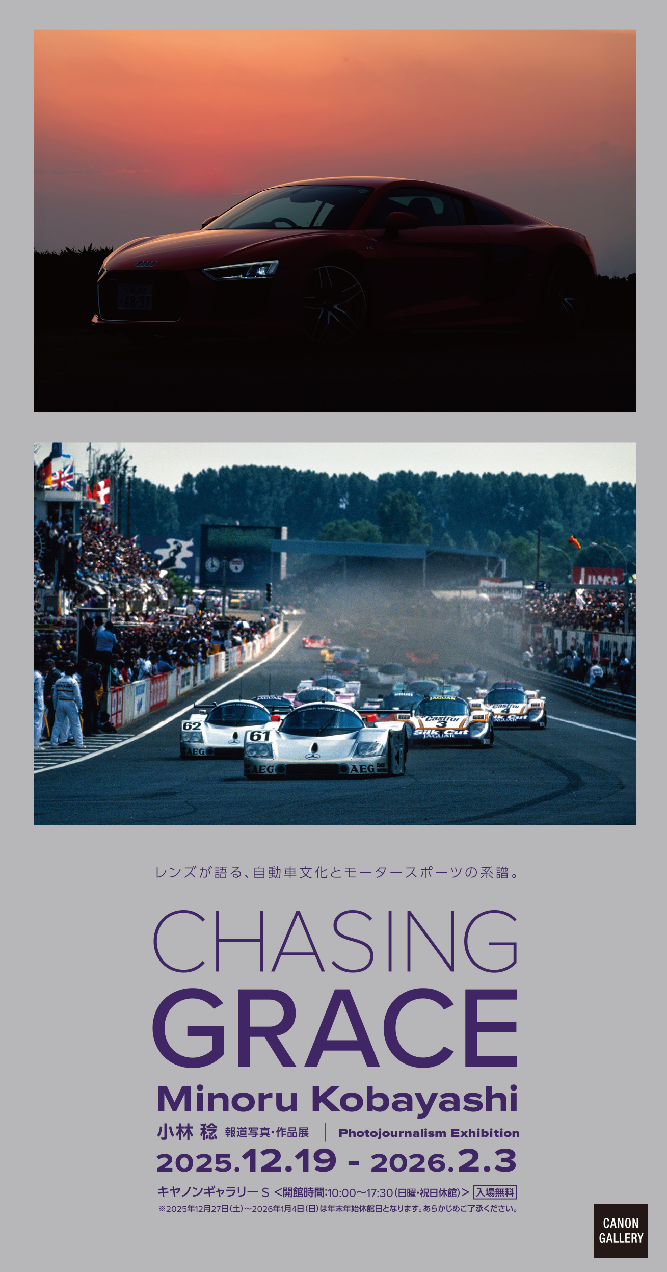 48年間に撮影した、ロードカーとモータースポーツの写真を展示します。